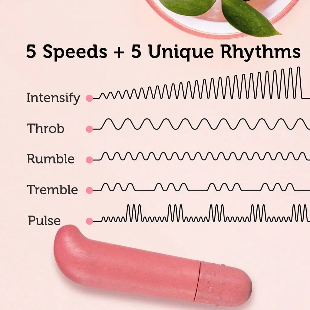 The Eco G-Spot Vibe is part of the Gaia® collection: the world’s first biodegradable and recyclable vibes! This pleasure-packed vibe is crafted from Biofeel, a starch-based bioplastic. Enjoy quiet, powerful one-speed vibrations controlled with an easy push button. The curved tip is perfect for firm G-spot pressure or external stimulation. You’ll love the power of this smooth vibe and take comfort knowing that the Gaia Eco G-Spot Vibe uses less energy and creates less greenhouse gas emission than any other sex toy on the market! It's waterproof, fun in the tub, and easy to clean.