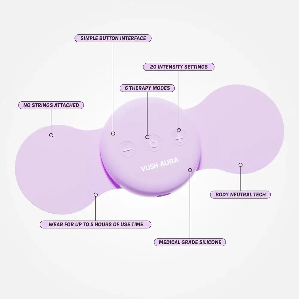 Dispositivo TENS recargable Aura para aliviar el dolor menstrual con estuche de viaje
