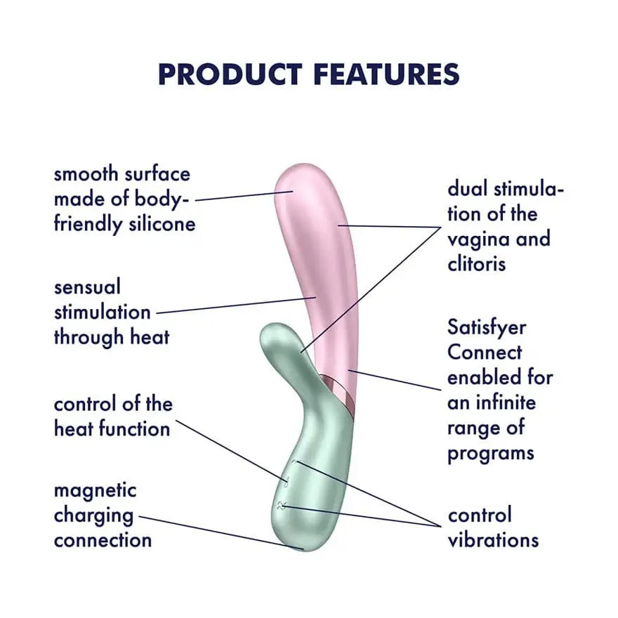 ¿Buscas una manera de subir aún más la calefacción en estas calurosas noches de verano? No busques más que HOT LOVER: ¡la primera vibración cálida y de doble estimulación de Satisfyer! Equipado con dos motores, uno en el estimulador del clítoris y otro en el eje, el HOT LOVER viene listo para relajarte en tu viaje de placer. El HOT LOVER puede calentar hasta 104°F. Ésta es la temperatura justa para una "sensación realista" del contacto humano. Además, con su forma ergonómica y mango más largo, HOT LOVER sabe cómo abrazar y calentar todas tus curvas.
