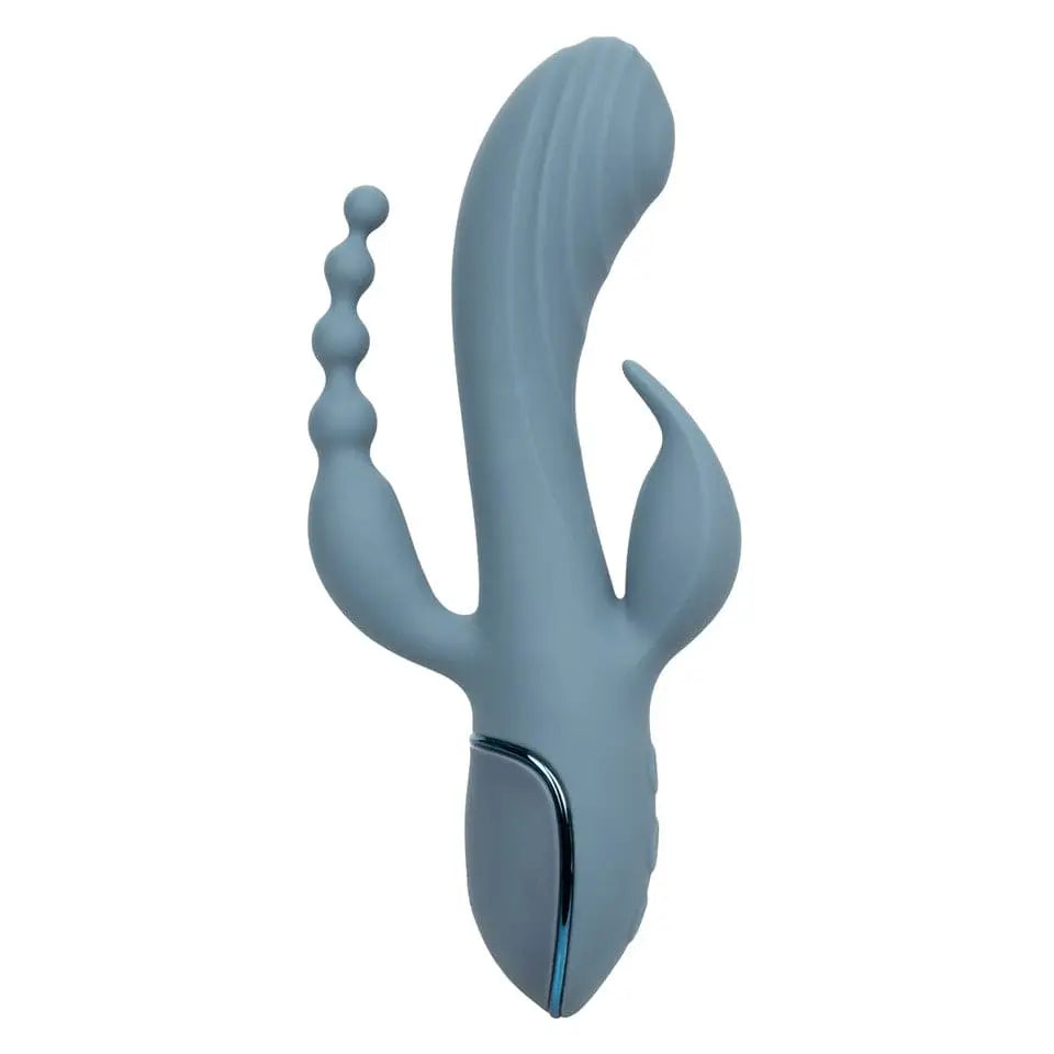 Indulge your wildest fantasies with the wickedly powerful III™ Triple Ecstasy. Experience pleasure like never before with the powerful triple action rechargeable massager with a pulsating shaft, beaded tail, and contoured stimulator. This daring triple penetrator is made for fulfilling pleasure.