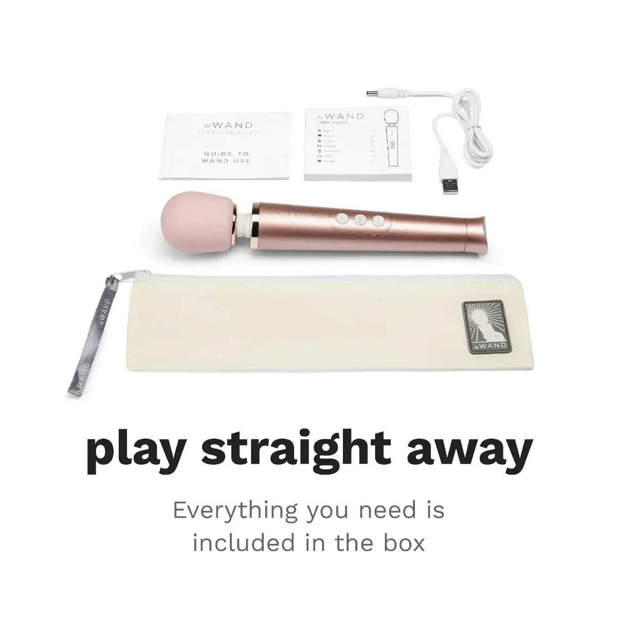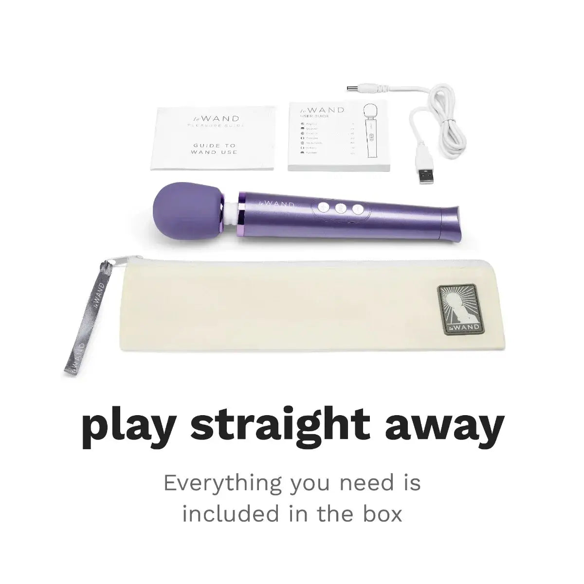 Le Wand Petite Massager, Storage Case, USB Charging Cable, Le Wand Guide to Wand Use, User Guide