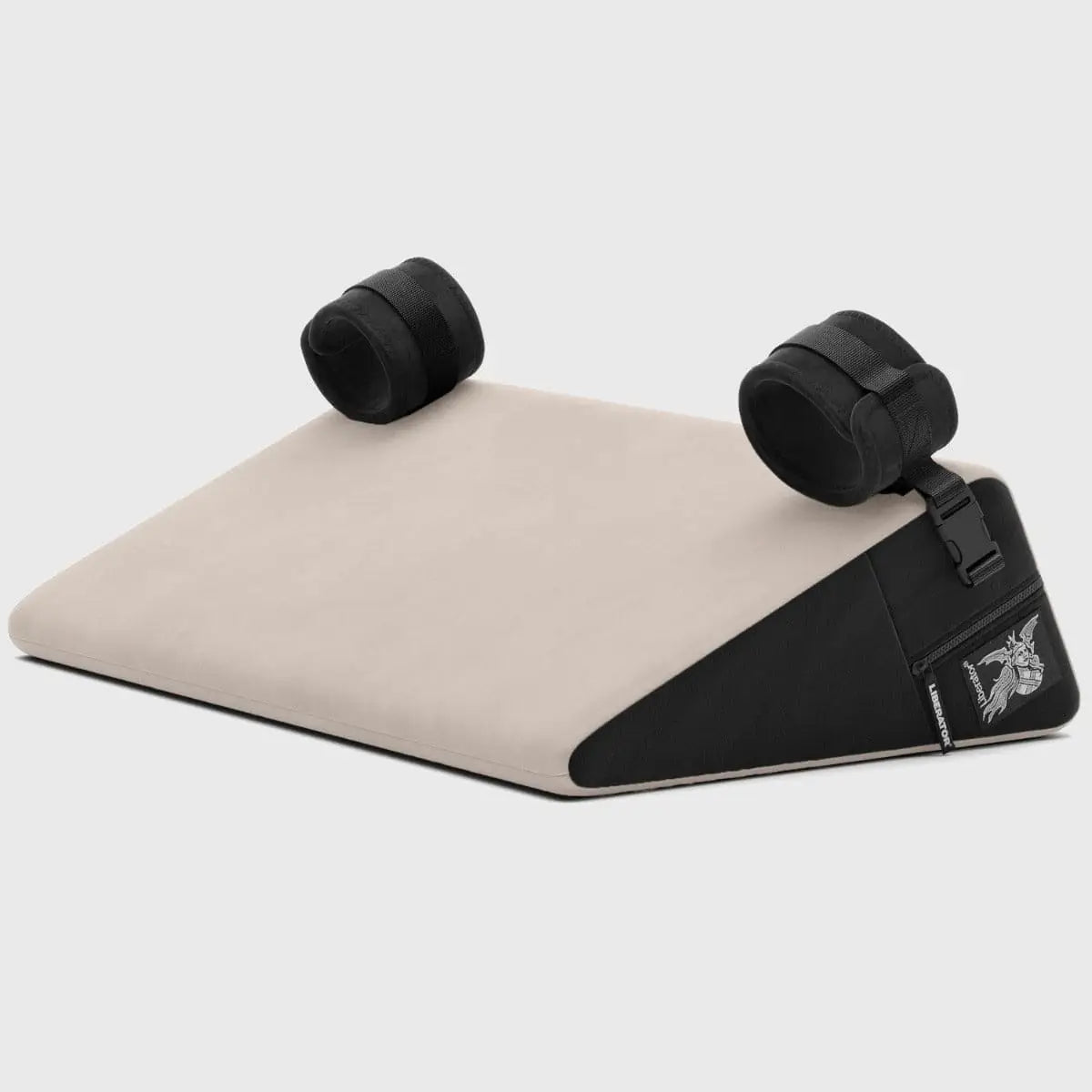 Experience thrilling control and enhanced intimacy with the Bondage Wedge. Not just for positioning, this expertly designed shape offers firm support, deeper angles, and effortless restraint for maximum pleasure. Whether you're trying out new positions or intensifying your favorites, the Bondage Wedge will cradle your body with ultimate comfort and stability. And with the included cuffs, transform foreplay into an electrifying experience and revel in the sensation of total surrender or dominance. For an even more intense ride, pair it with the Bondage Ramp (sold separately) - because extraordinary pleasure is always within reach.