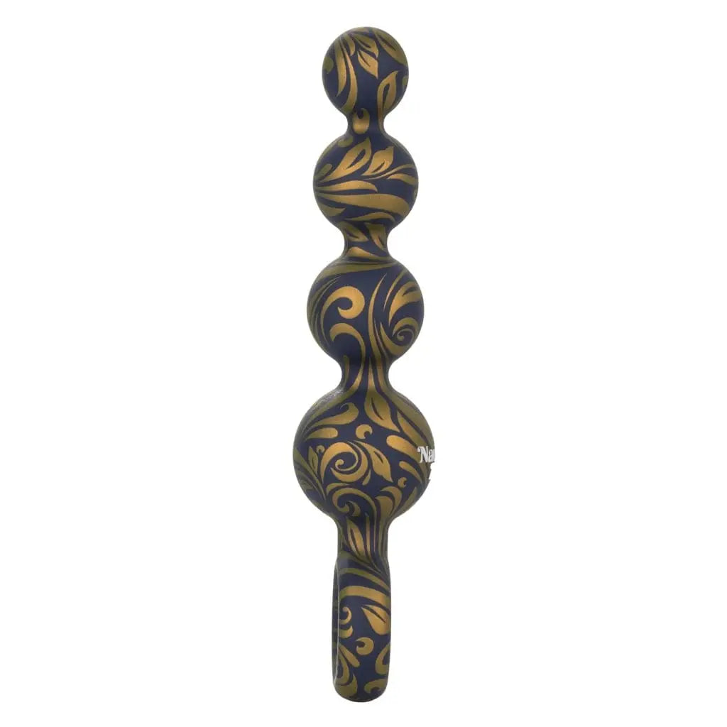 The Naughty Bits® Butt Balls™ Silicone Booty Beads is made for all your anal needs with a plush silicone, tapered beads and easy retrieval loop. The petite plug has a sturdy o-shaped retrieval loop for comfortable insertion, thrilling stimulation and safe, gentle removal. Perfect for beginners and erotic experts alike, the tapered shaft increases in girth for intensifying pleasure. The ultra plush silicone and golden marbled pattern of this gorgeous anal probe will make even the most stylish lover smiling before and after.