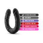 Feeling adventurous? The Rusé 18 Inch Silicone Double Dildo is U-shaped, holds a curve, and is loaded with creative possibilities. Use it alone as a penetrative toy with added reach and let the curve guide its way to your G spot. Or go deep and hard into double penetration with yourself or a play partner! Made of 100% platinum cured silicone means it is body safe, nonporous, and easy to clean.