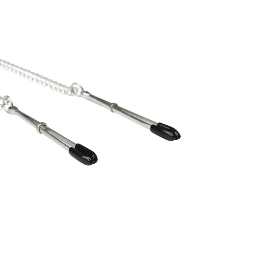 Let this sparkly 20-inch double strand add some formal flair to your nipples, while the rubber-tipped clips remind you that a little pain can make pleasure even sweeter.