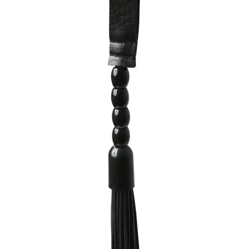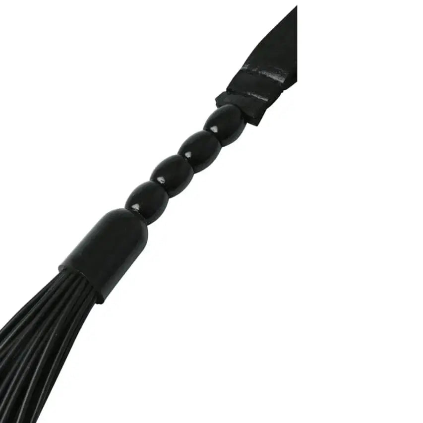 Gently glide the strands, caressing and teasing with each stroke. Trail them across your lover's curves and crevices, igniting their pleasure points. With a firm swing, give them a lightning-like jolt of sensation! Alternate between stinging snaps and sensuous sweeps to keep them guessing. And don't forget, the faux leather loop lets you wear or display this playful tool with ease.