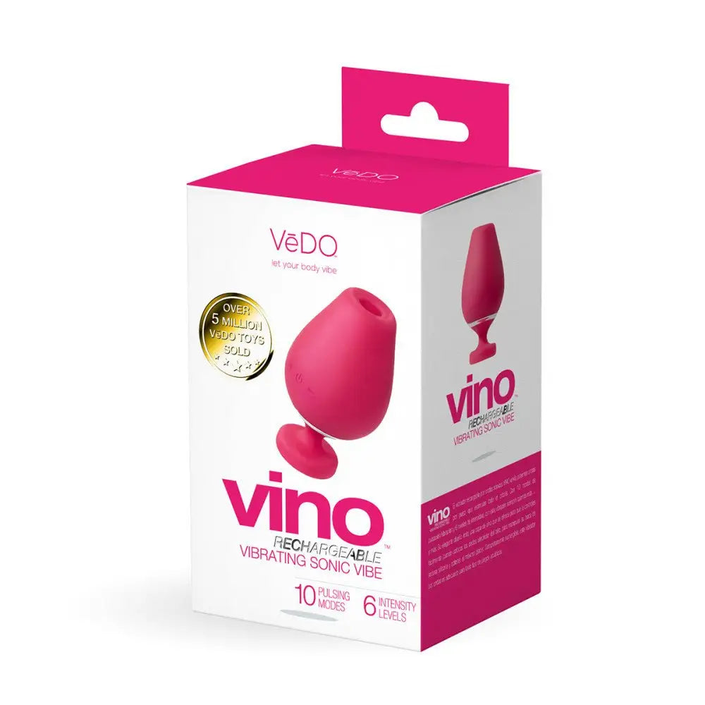 Vino Rechargeable Sonic Vibe sends powerful pulsating waves, pleasuring your entire clitoris. With 10 pulsating modes and 6 intensity levels, this vibe keeps you wanting more. Sleekly designed like a glass of wine, this sonic vibe lends itself to effortless control. Place your fingers around the stem to maneuver the silky smooth silicone mouth for maximum pleasure. Completely submersible, it's up for any type of water play.